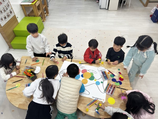 무지개 물고기 동화는 이미 많은 학생이 익숙한 이야기여서 수업이 한층 수월하게 진행되었습니다. 그 후 나눔에 관해 이야기할 때, 몇몇 학생들이 엉뚱하고 재치 있는 답변을 했지만, 그 속에서도 나누고자 하는 따뜻한 마음을 엿볼 수 있었습니다. 덕분에 모두 함께 웃으며 수업을 이어갈 수 있었고, 따뜻한 대답을 하는 학생들의 순수한 마음에 오히려 제가 배워가는 시간을 가질 수 있었습니다.