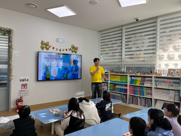‘무지개 물고기’ 이야기를 통해 나눔의 개념이 얼마나 소중한 경험인지 익히는 시간을 가짐. 교재 23p 질문 단계까지 이론 수업과 진행을 맡음. 21p 활동에서 ‘자신에게 소중한 것’을 작성할 때, 칸이 부족하거나 제약이 없도록 활동지 뒷면에 자유롭게 적게 함. 22p 내용을 다루며 소중한 것 중 ‘나눌 수 있는 것’과 ‘나눌 수 없는 것’을 구분하는 방법을 O, X 방식을 활용하여 아이들이 쉽게 이해하도록 설명해 줌.